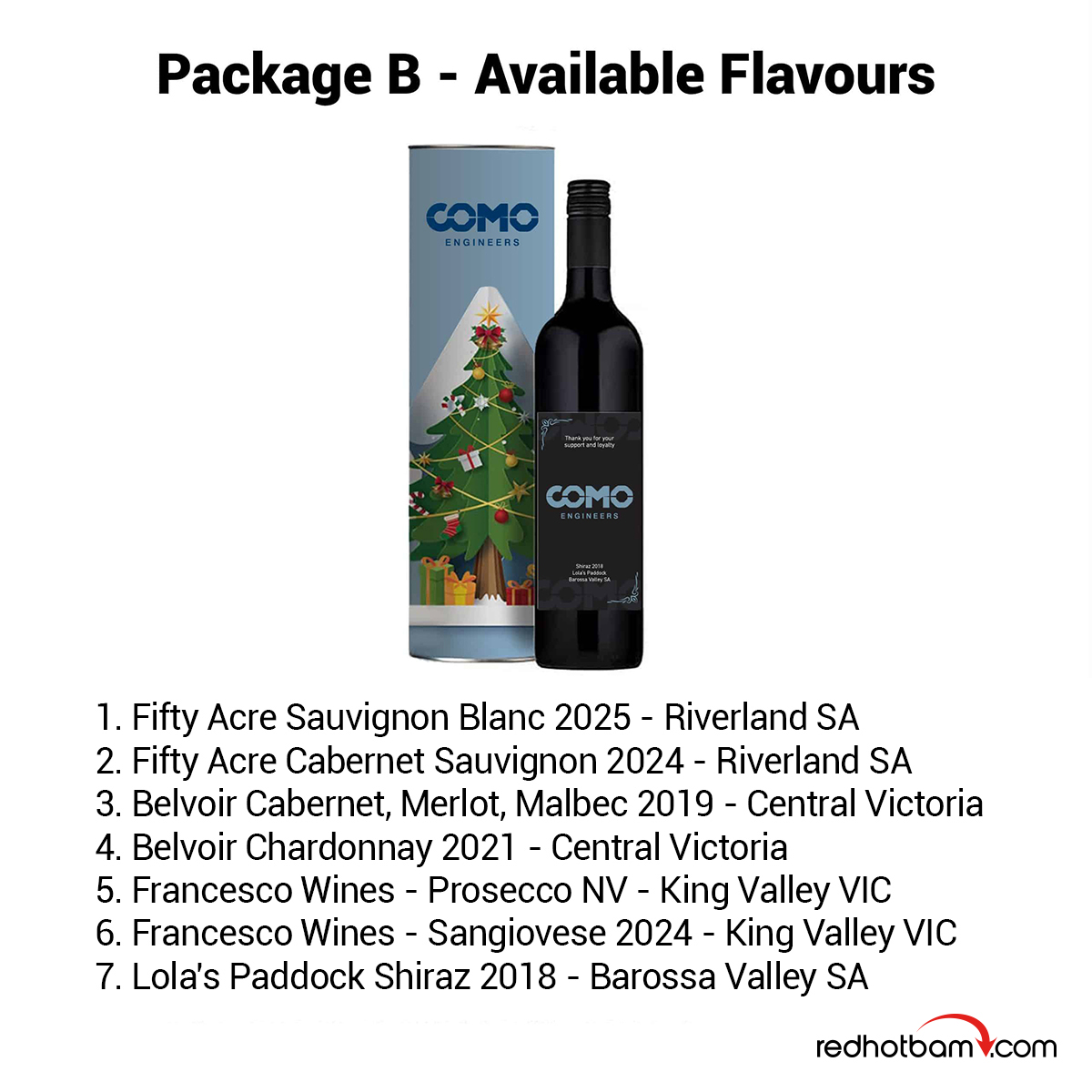| Wine Flavour Options | Price ($AUD) – MOQ:36+ |